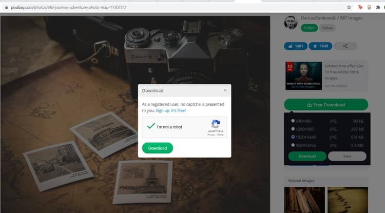 Step 4: Click on ‘Free Download’ option, choose the image size as you deem fit and hit download